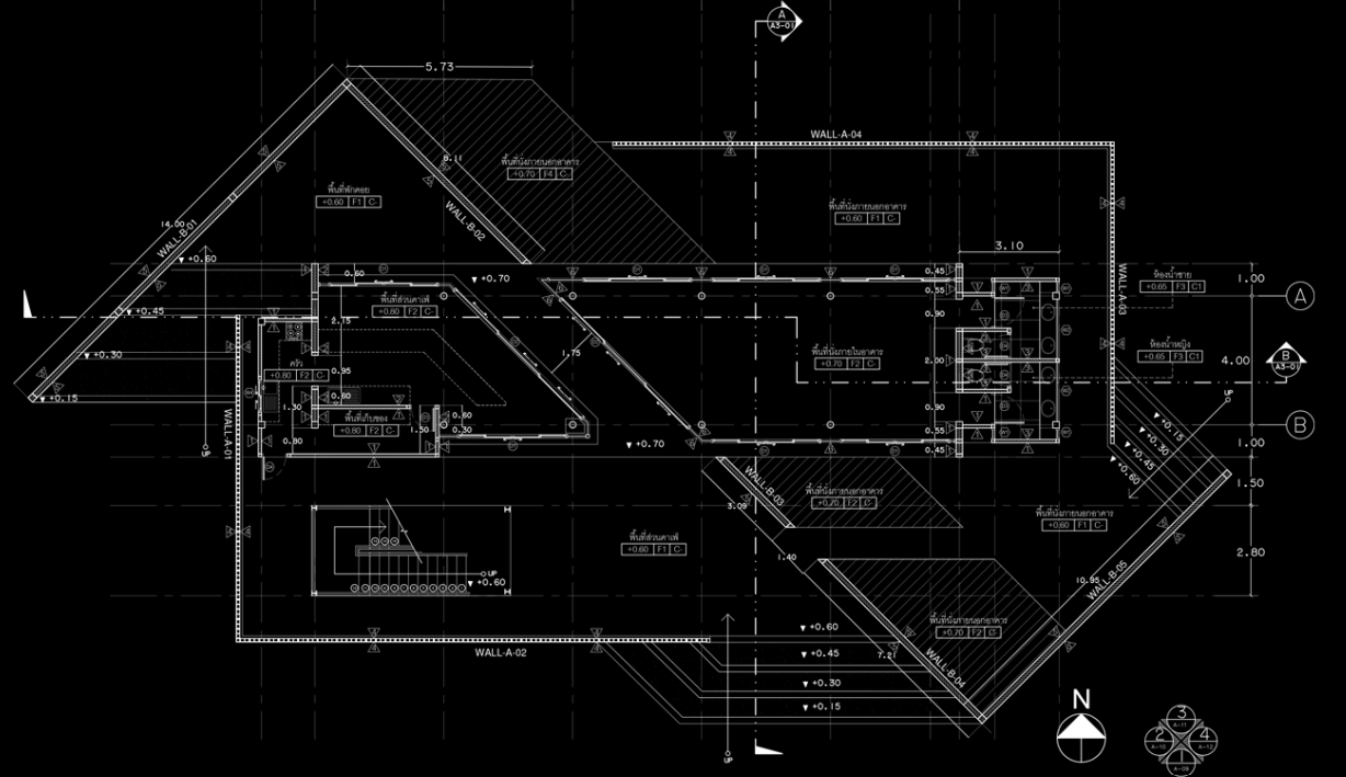 ร้านกาแฟแห่งนี้ ตั้งอยู่กลางสวนยางพาราในจังหวัดนครศรีธรรมราช ด้วยอาณาเขตที่กว้างใหญ่มาก สถาปนิกจึงเริ่มจากการวาง Lay out ของอาคารเพื่อกำหนดขอบเขตพื้นที่ในการสร้างคาเฟ่ก่อน เพราะมีผลต่อการตัดต้นไม้ภายในพื้นที่ คุณอานนท์ เพ็งศร สถาปนิกจาก VARC HD+ID เล่าถึงการออบแบบ Lay out ว่า